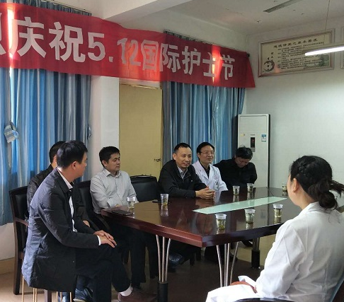 5月10日上午9点,副校长杨伟军、后勤处副处长张星明、集团总经理施一满,副总经理柳翼、曾兰桂来到金盆岭校区医院,看望慰问医护人员,并与医护人员进行了座谈。