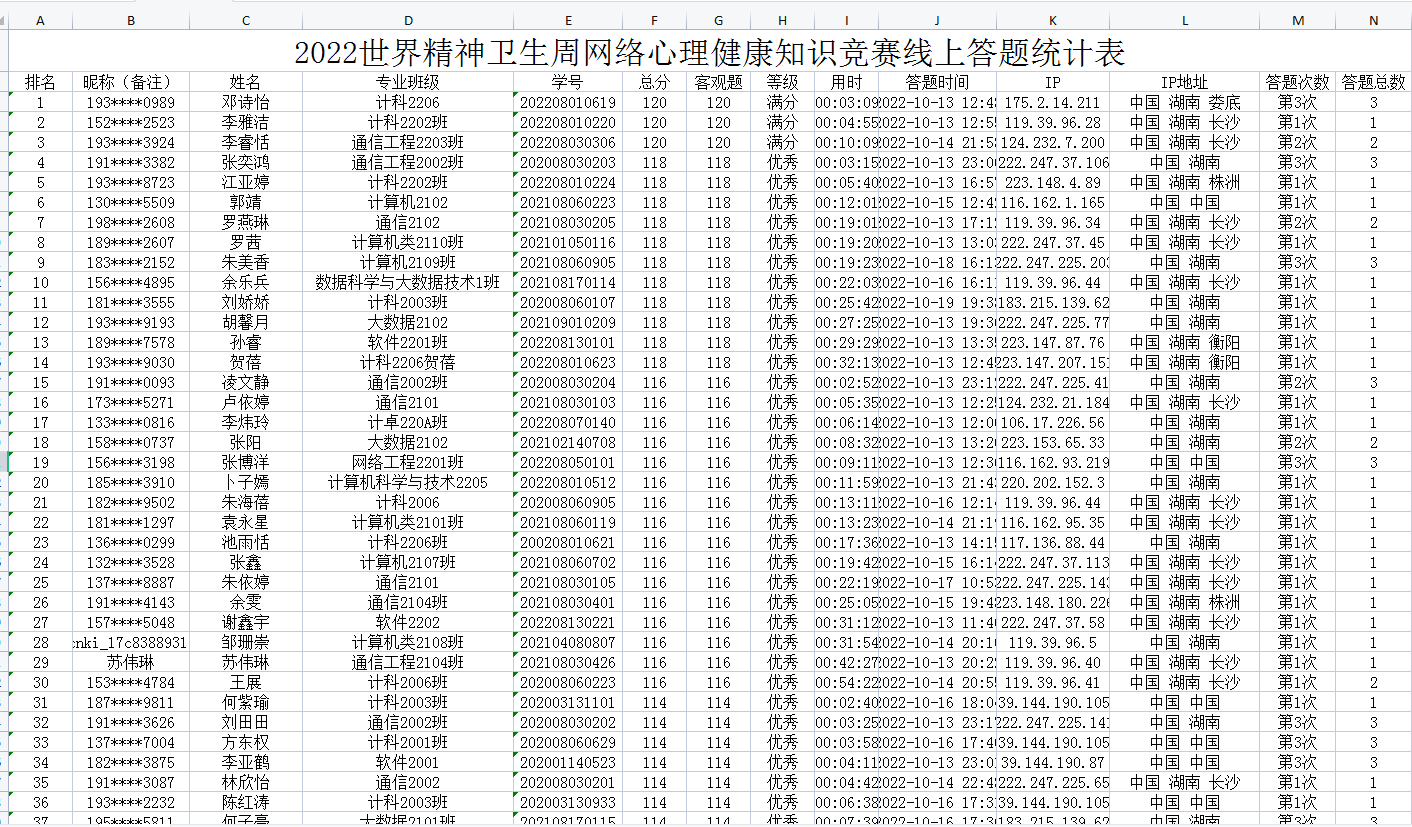 为增进同学们对“世界精神卫生日”的了解,创新心理健康教育形式,增强同学们的心理健康知识,计通学院组织开展了“构建和谐校园、共护身心健康”——世界精神卫生周知识竞赛。
