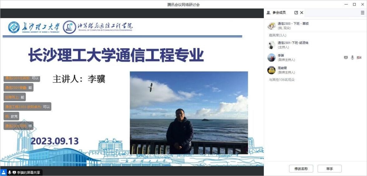 9月13日下午,计通学院各专业通过腾讯会议线上直播的方式举行2023级新生专业介绍大会,各班下班党员、下班团干及627名新生参加此次大会,会议由各系系主任主持。