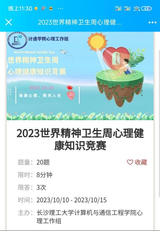 计通学院举办“世界精神卫生周”知识竞赛