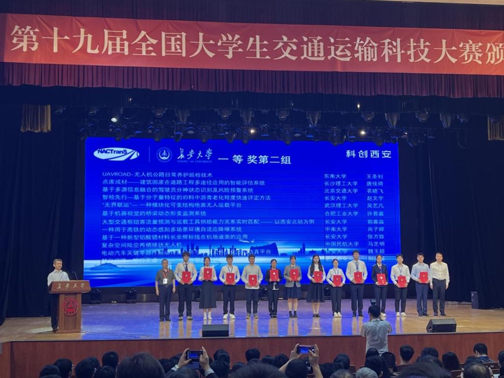 5月26日,第十九届全国大学生交通运输科技大赛决赛在长安大学落下帷幕。永利官网在本次比赛中共获得一等奖1项、二等奖1项,优秀奖1项,获奖数量位居参赛高校前列。其中,“点废成材——建筑固废在道路工程多途径应用的智能评估系统”团队(指导老师高乾丰)获得一等奖;“耐久性铺面材料与结构一体化设计平台”团队(指导老师刘朝晖、柳力)获得二等奖;“高速公路路堤拼接非均匀沉降控制及智慧建养技术”团队(指导老师杨豪、张军辉)获得优秀奖。