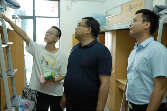 9月14日下午,学院全体领导走进新生宿舍,走访看望新同学,为刚进入大学校园的新生们送去贴心关怀与美好祝愿。