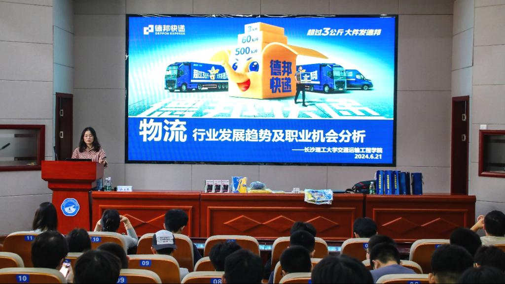6月21日,yl7703永利官网交通学院于云塘校区工科二号楼B301报告厅举办物流行业发展趋势及职业发展机会报告会。特邀德邦快递人才发展部高级总监饶文琴担任主讲人,交通学院就业专干李特超出席,交通学院80余名交通运输、物流工程专业学生参加会议。