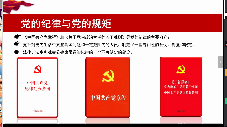 通过这次党课学习,让同学们对党的纪律有了更充分的认识和更深刻的理解。只有时刻将党的纪律放置心间,才能更好地为人民服务。
