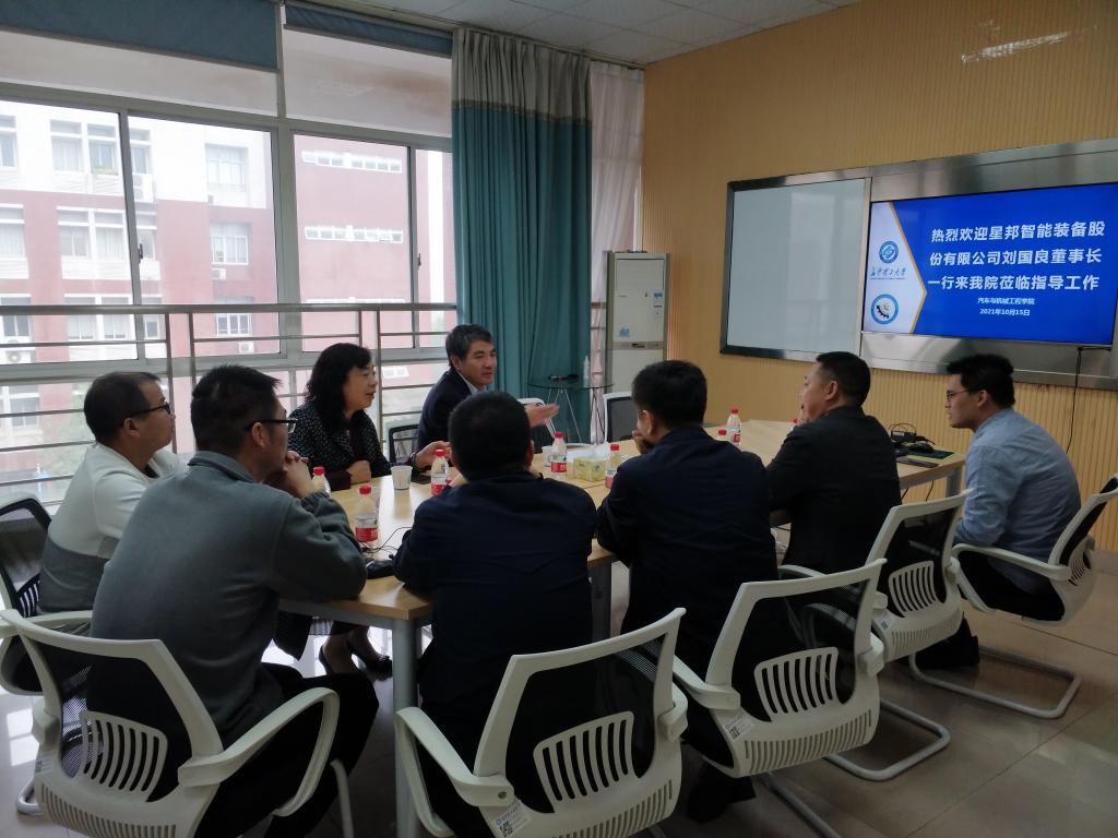 会后,在学院领导的陪同下,星邦智能装备股份有限公司董事长刘国良参观了学院文化墙、科研工作室,考察了目前合作在研项目。