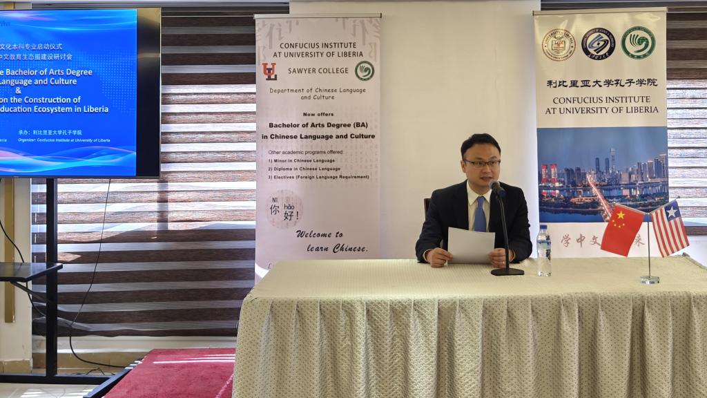 利比里亚大学Geegbae教授,利大孔院教学点救世军理工学院校长Suku和圣语学校校长She,以及利比里亚留华同学会会长Wiagbe等也先后发言。他们就如何推进中文教育本土化,寻求适应利比里亚国情的综合解决方案;如何实现“孔院+利方院校”互动,提升中文教育成效;如何通过中文教育提升“中国+利比里亚”互动,深化中利友好合作等方面发表了自己的看法。