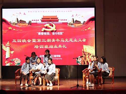 5月28日晚,化学学院“青春有我,奋斗有我”五四晚会暨院第三期青马班结业典礼在学活报告厅举行,院党委副书记汪功伟,学工办辅导员银波、胡佳佳和杨湘怡参加,全体学生干部、青马班学员和学生代表参与。