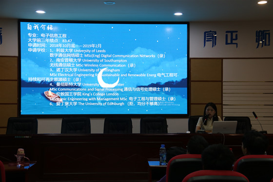 5月28日晚,电气学院于工科一楼B503举办“就业与出国交流会”活动。此次交流会共邀请到7位2015级学生分享经验,电气分团委学生会副主席李明硕、学习部部长童程辉以及电气学院各年级同学参加此次活动。
