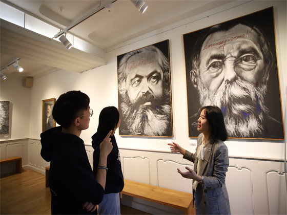 实践团在特里尔沿着青年马克思成长足迹,追寻马克思追求真理的故事,在马克思故居博物馆、来自中国的马克思雕像等地,通过视频拍摄的形式,开展了以“交通青年对话马克思”为主题的微课堂,从马克思和燕妮的相知相守、马克思和恩格斯的革命情谊、青年马克思求学经历等角度,讲述了青年马克思的故事,向青年学生传递了学习马克思不畏艰难、勇于奋斗的精神力量。同时团队还在特里尔开展中国特色文化宣传,来自中国的剪纸、风筝、刺绣展品在海外友人的喜爱。