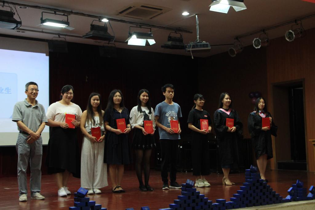 仪式上,领导老师们还庄重为湖南省、校级优秀大学生和院级优秀大学生颁奖,一起合影纪念。