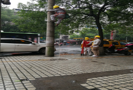 维修期间,冷水江的雨越下越大,师傅的工作变得更加困难。但是,师傅们仍然严格按照操作流程,一丝不苟进行着维修工作。