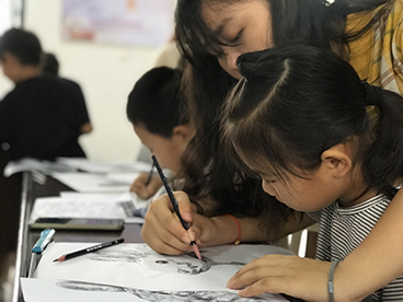 “大家都喜欢看动画片么?”“大家想认识一位著名画家梵高吗?”艺术支教在主讲老师易颖的问题中拉开了帷幕。