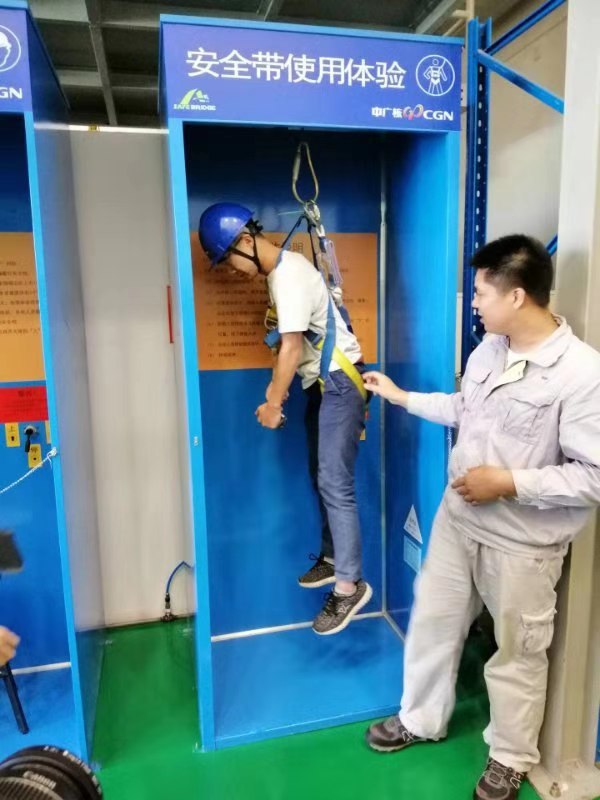 早上8点,实践团在老师的带领下,于大亚湾核电站的培训中心接受了职业能力培训。带训老师仔细讲解,指导,同学们认真听讲,对注意事项认真做了笔记。在实践操作环节,同学们学习了如何使用安全带。观摩带训老师示范后,几名同学穿上装备,和带训老师一起体验。在体验的过程中,同学们遵守纪律,认真仔细的听带训老师讲解,跟着带训老师一起操作,充分融入到核电站工作环境中来。实践过后,成员谢克桓有感而发:实践才是检验真理的唯一标准啊,切身体验过核电站的实际工作后,我才深刻感受到各种的不易与安全的重要性。
