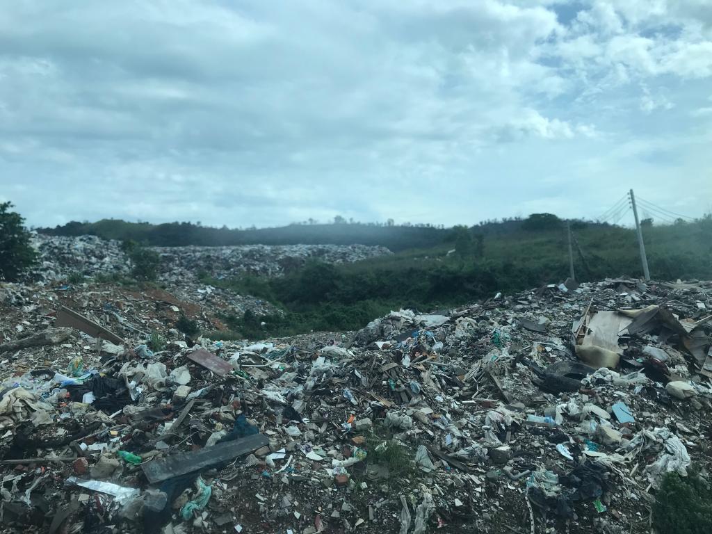 在Dr.Piong Mohd 的带领下,实践团成员到达了沙巴州的一个垃圾填埋场。首先填埋场的工作人员向大家交代了一些需要注意的安全问题并简单介绍了把填埋场的总工艺流程。在工作人员的带领下,实践团前往垃圾填埋中心进行参观。填埋中心虽然堆满了许多垃圾,但是不同种类的垃圾还是被摆放在不同的区域,在沙巴居民高度重视垃圾分类。