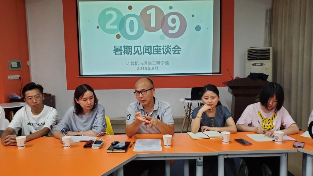 9月4日晚,计通学院在云塘校区理科楼B103举行了暑期见闻座谈会。院党委书记甘为、党委副书记陈华、团委书记潘枝花,学院党员、学生干部、暑期实践团志愿者和各年级学生代表参加。