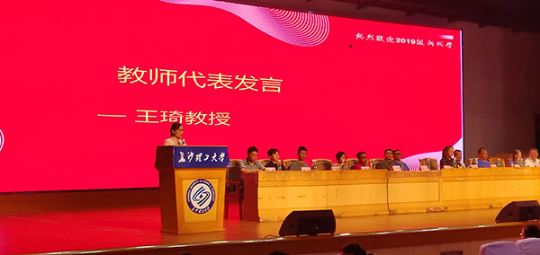 王健在致辞中欢迎2019级新生加入设计艺术学院大家庭,希望同学们“以梦为马、不负韶华、奋发学习、成长成材”。王琦勉励2019级新生“天行健,君子以自强不息”,珍惜同学情谊与大学时光。