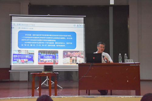 9月9日,副校长蒋昌波以“立鸿鹄志,做奋斗者”为主题为材料学院2019级全体新生讲授“第一课”。学院党总支副书记唐青、辅导员银波与2019级全体研究生、本科生新生参加。