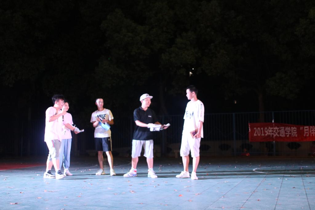 晚会前,交通学院为2019级新生发放月饼及饮品。晚会伊始,由各位下班带来歌曲《平凡之路》,他们借由这首歌希望2019级新生能在大学里找到自己前进的道路。随后,田上和彭笠为新生送上最真挚的中秋祝福。文工团声乐队带来《I have a dream》和《时间煮雨》。文工团舞蹈队的《夏日甜心》将整场晚会推向高潮。接着,学生会成员带来歌曲《飞云之下》。晚会中的互动环节“飞七令”和“听歌识曲”深受同学们的喜爱。