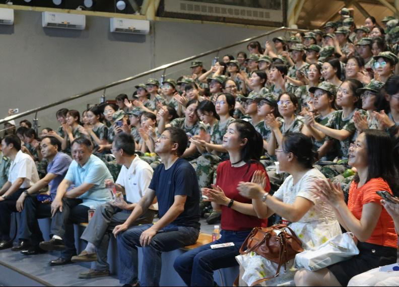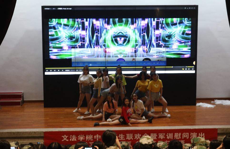 慰问演出在文法啦啦队pretty girl优美的舞姿中拉开序幕,温婉美丽的文法姑娘一出场就获得了观众们的阵阵掌声,随后的吉他弹唱、礼仪队舞蹈以及新生唱跳更让新生感受到了大学校友丰富多彩的文化生活,展现出当代大学生的个性魅力。