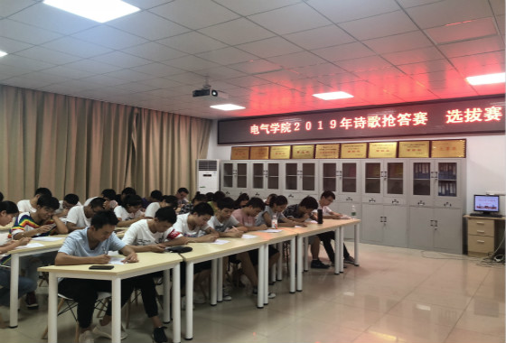 为庆祝新中国成立七十周年,激发广大电苑学子的爱国爱校情怀,9月28日晚,电气学院在工一A504举办诗歌抢答大赛,2018级和2019级部分同学参加。