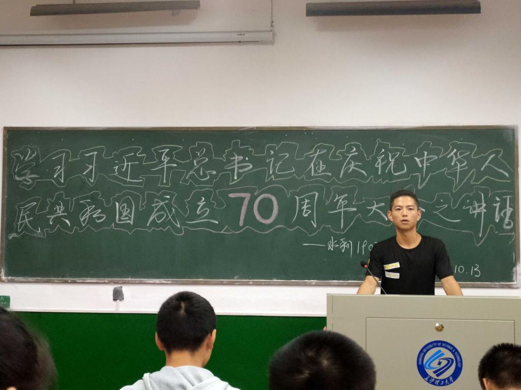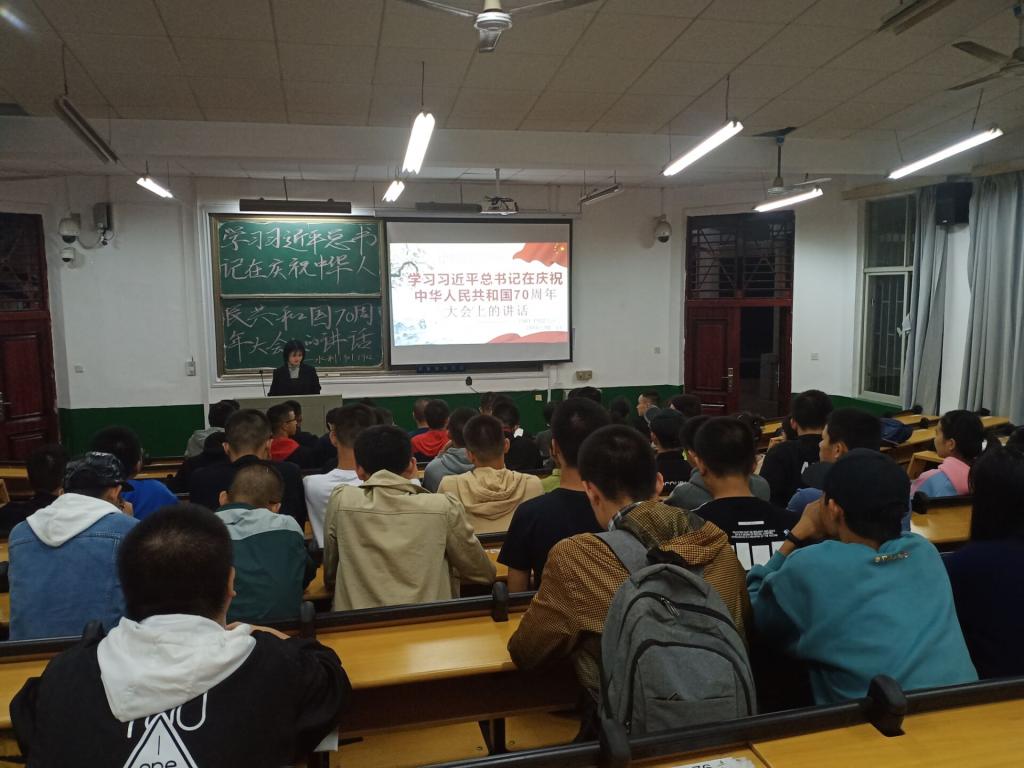 习近平总书记在庆祝中华人民共和国成立70周年大会上发表了重要讲话。为了提升广大水利学子的爱国情怀,提高政治理论素养,坚定社会主义理念,水利工程学院组织全院同学开展以“学习习近平总书记在庆祝中华人民共和国成立70周年大会上的讲话”为主题的团组织生活会。