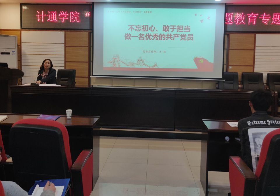10月18日,计通学院于云塘校区理科楼B311举行了“不忘初心、牢记使命”主题教育专题党课。党课邀请到了校党委委员、宣传部部长方琼主讲。计通学院党委副书记陈华主持,党校学员和团学干部参加本次党课。