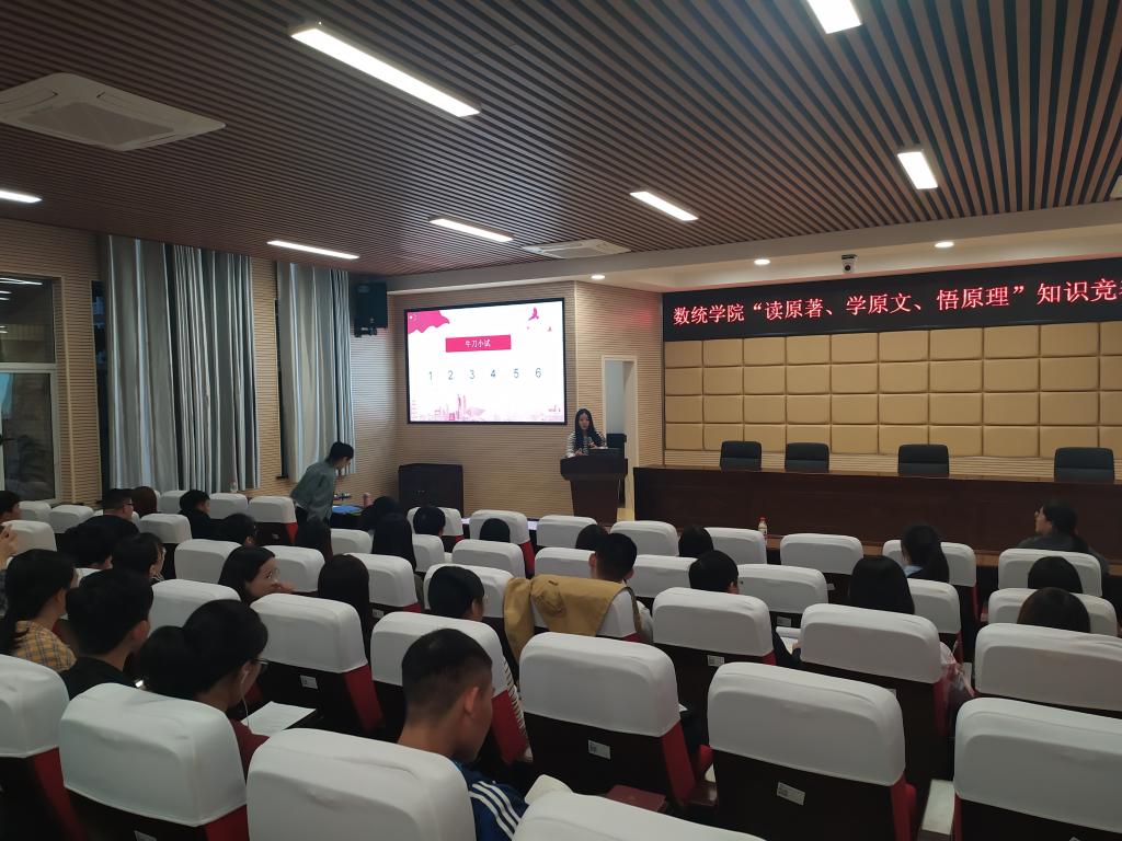 10月20日晚,数统学院在理科楼A200举行“读原著、学原文、悟原理”知识竞赛活动。学生党建辅导员庄奕及全体学生党员参与。