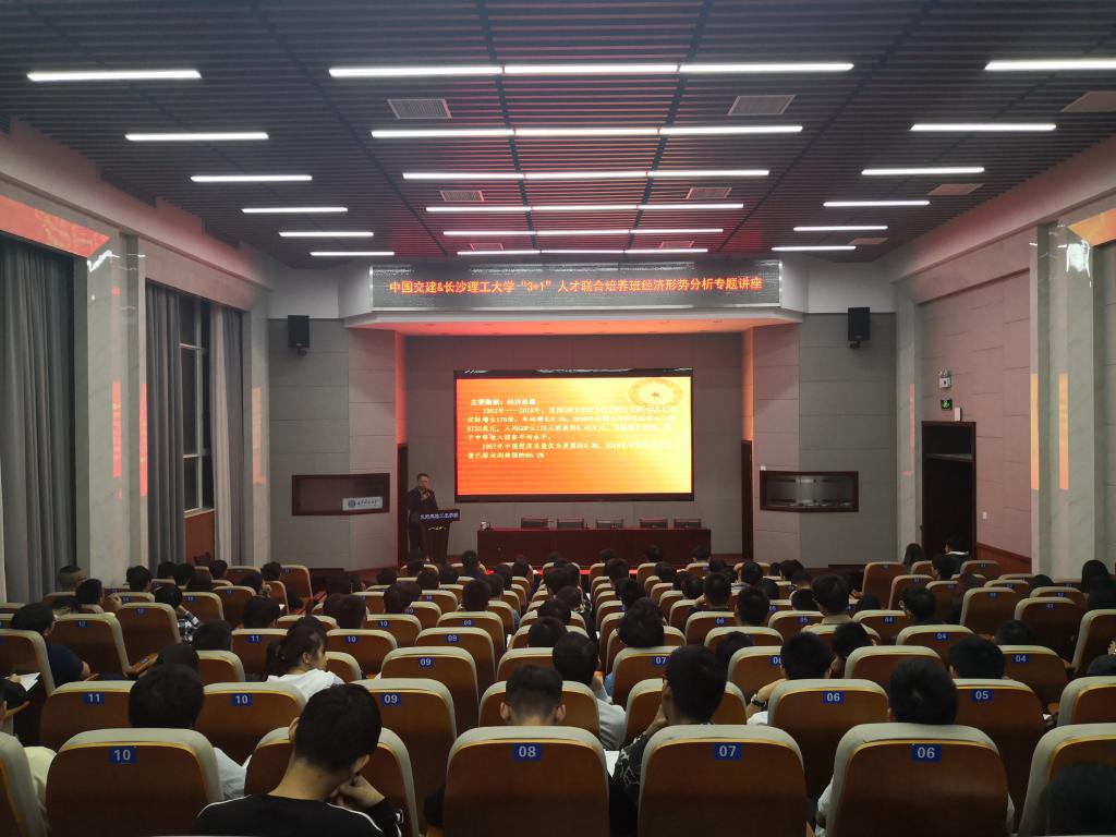 11月4日晚,交通学院组织中国交建&yl7703永利官网“3+1”人才联合培养班开展经济形势分析专题讲座。本次讲座由湖南省经济学会副理事长、中国产业经济学会理事、马克思主义学院教授刘解龙主讲,交通学院党委副书记田上、联培班班主任曾凯出席。