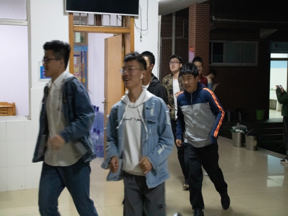 在工作人员的引导和同学们的积极配合下,消防演习活动于行健轩三号楼顺利有序开展。18点40分警报声响起,同学们迅速进入紧急疏散状态,全体学生用湿毛巾、衣服等捂住口鼻按照预先的消防演习方案有序撤出宿舍,快速到达安全区域。随后,保卫处易老师给全体学生详细讲解了灭火器的使用方法,并现场进行演示,并邀请部分学生体验使用灭火器的过程。