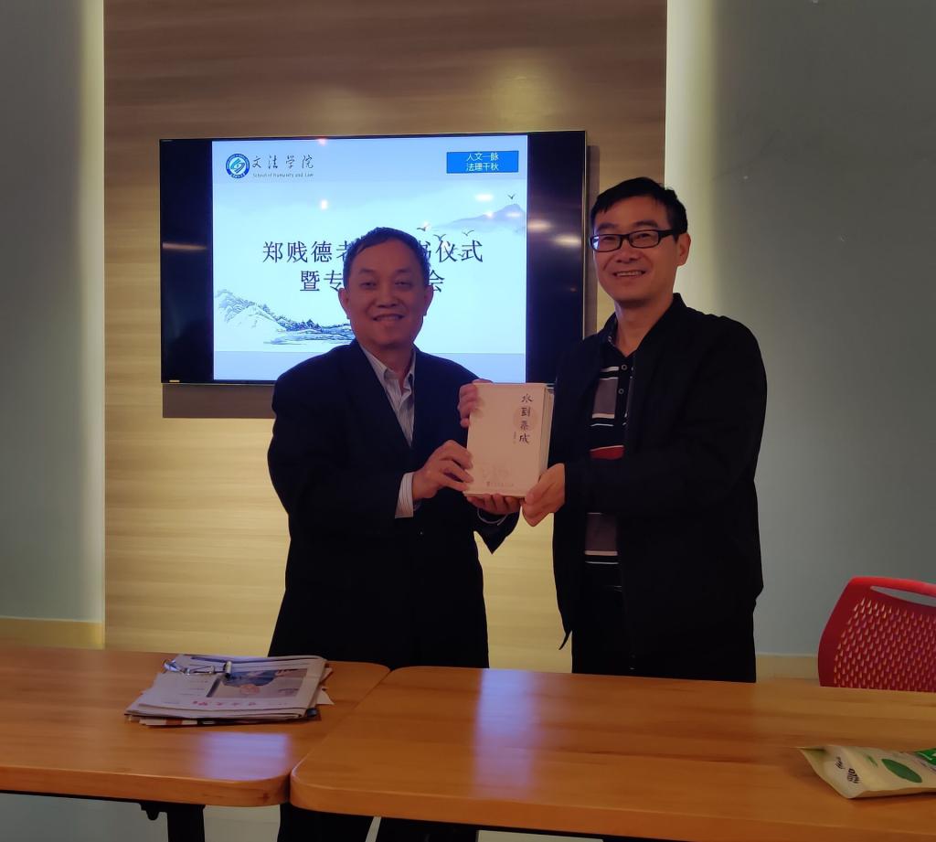 最后,魏桃初接受了赠书并与郑贱德先生进行合影留念。