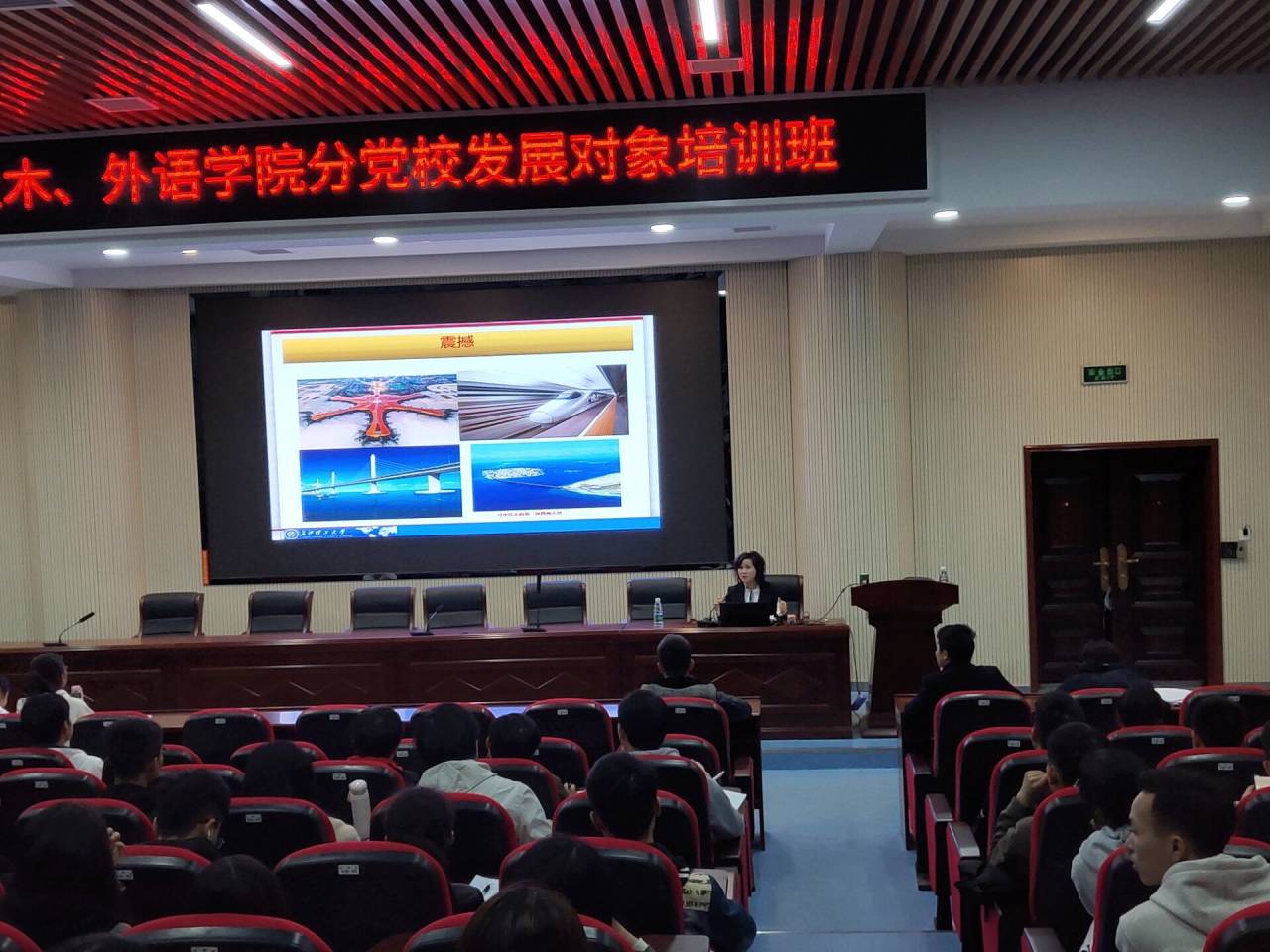 11月19日晚,土木、外语学院分党校组织第10期发展对象在工科二楼B302开展《习近平新时代中国特色社会主义思想》专题党课,由马克思主义学院教授董艾辉进行授课,培训班全体学员参加。