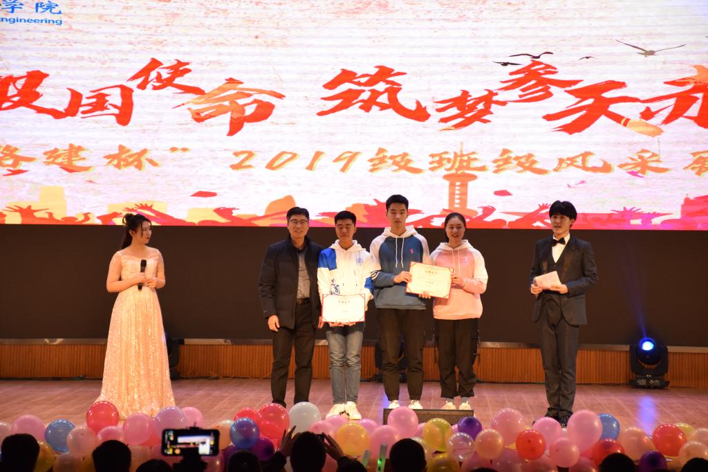 本次班级风采展在文工团的乐器演奏和舞蹈串烧中开场。节目分为播种、萌芽、成长和参天四个部分,其中,“班服设计走秀”与“班级才艺表演”相穿插。各班代表身穿本班自主设计的班服进行T台走秀,他们的步伐散发着青春活力,展示班服独特设计的同时,也展现本班的良好风貌及同学之间团结友爱的情谊。互动环节充分调动了现场观众们的积极性。各个班级的表演内容丰富、形式多样,有舞台剧、影子舞、小品、歌唱朗诵等形式。无论是形式新颖的影子舞、精彩纷呈的舞台剧还是欢笑连连的小品表演,19级新生都用他们自己独特的方式展现班级风采,赢得在场师生的赞誉。最后,一首《交通宏图 复兴伟业》的诗朗诵,再次将交通青年的热情点燃。本次班级风采展以大合唱《倔强》结束,“我和我最后的倔强握紧双手绝对不放……”每一句歌词无不体现着交通青年不惧困难,勇往直前的信念。经过激烈的角逐,道卓1901班、工管1901班获得一等奖,道桥1905班、工管1902班、道桥1904班获得二等奖,测绘1902班、道桥1903班、道桥1906班、道桥1901班、道桥1902班获得三等奖。