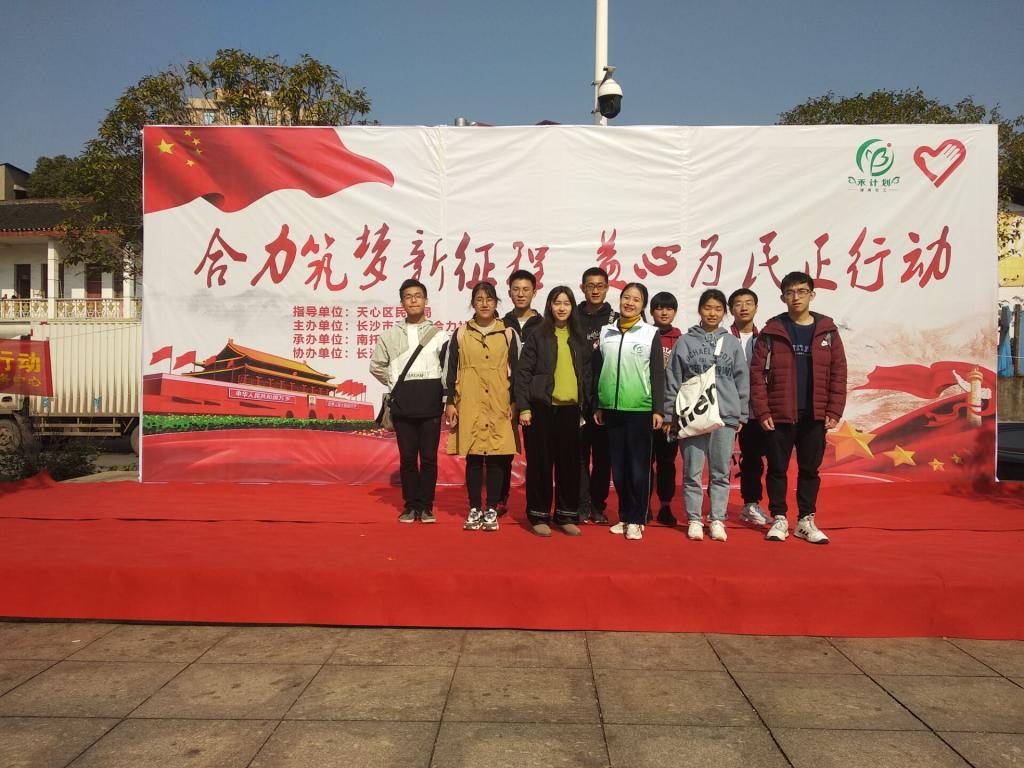 12月7日,材料学院青志协向阳实践团参加由长沙市天心区合力社工服务中心与先锋街道、南托街道、暮云街道和大托铺街道社工站联合举行的“合力筑梦新征程·益心为民正行动”主题公益活动,材料学院向阳实践团九名志愿者参加。