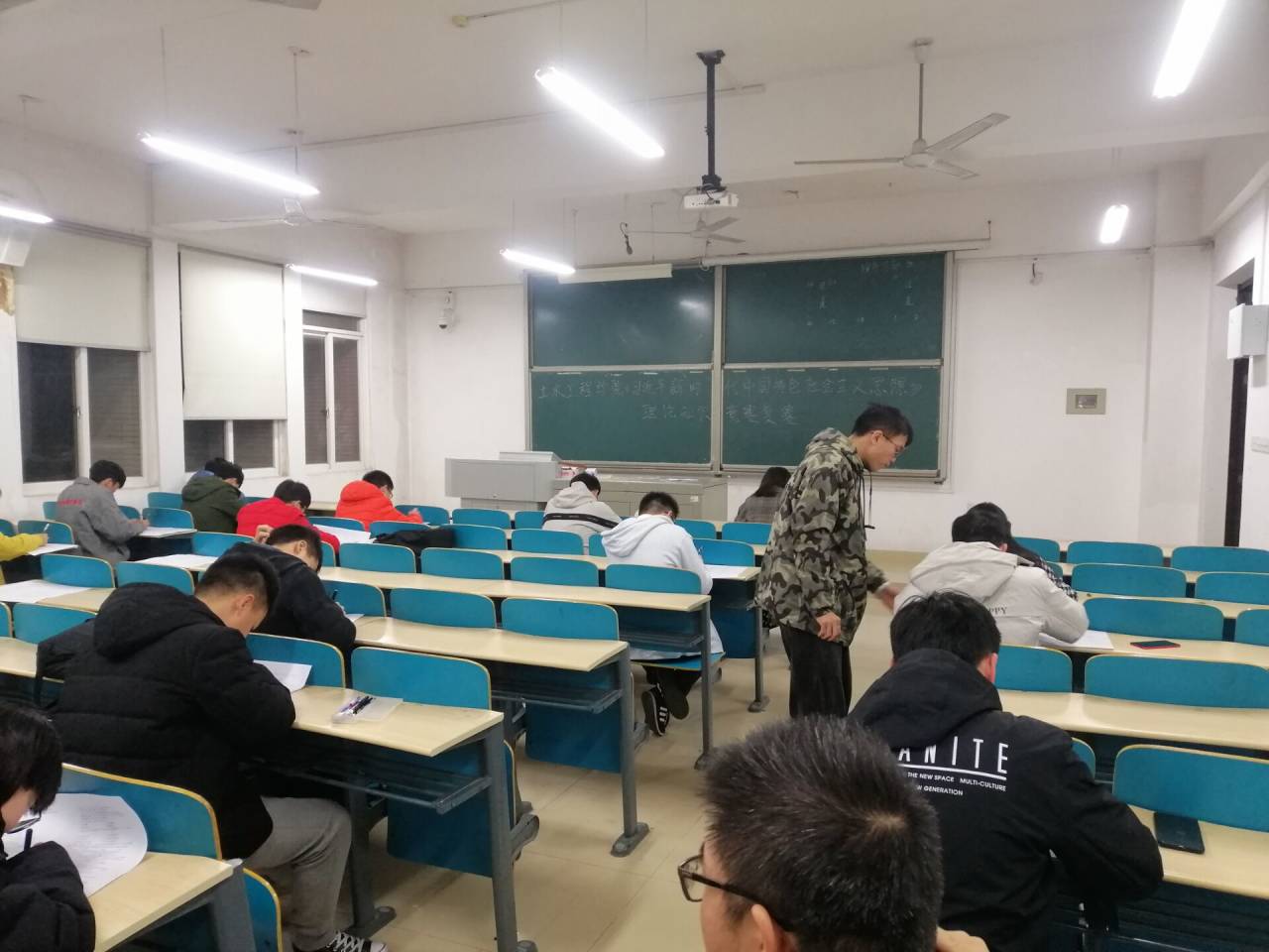 各选手在两个考场进行认真细致地作答,院学生会组织部、主题活动部全程严格监考。参赛选手们运用习近平新时代中国特色社会主义思想完成本次考试。