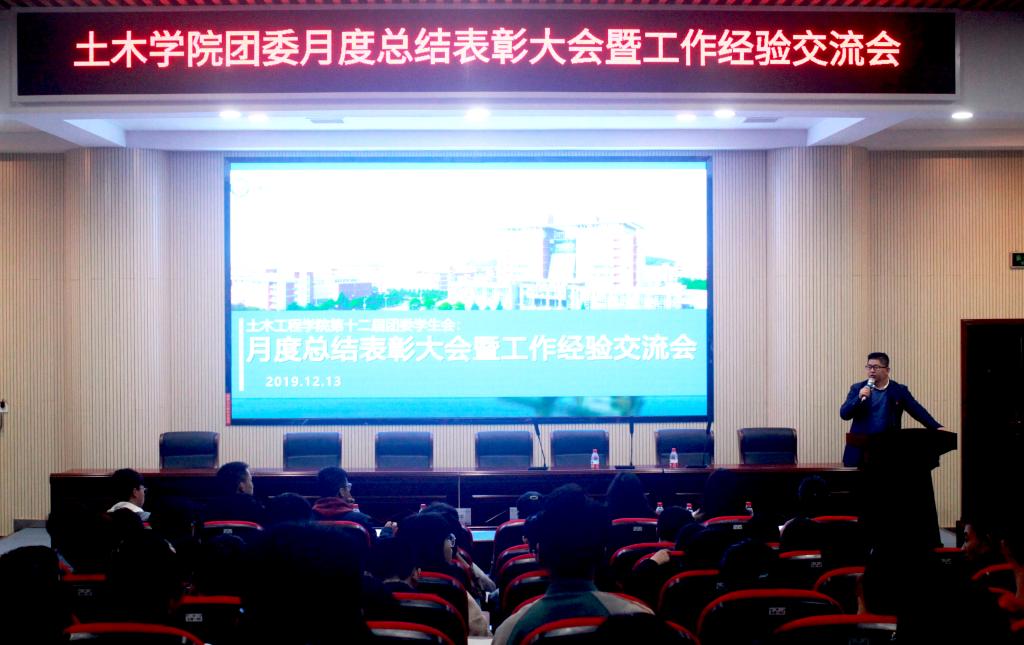 12月13日晚,土木学院在在工科二号楼召开了月度总结表彰大会暨工作经验交流会。土木学院党委副书记丁丹,学生会全体成员参加此次会议,本次会议由院团委书记李小军主持。
