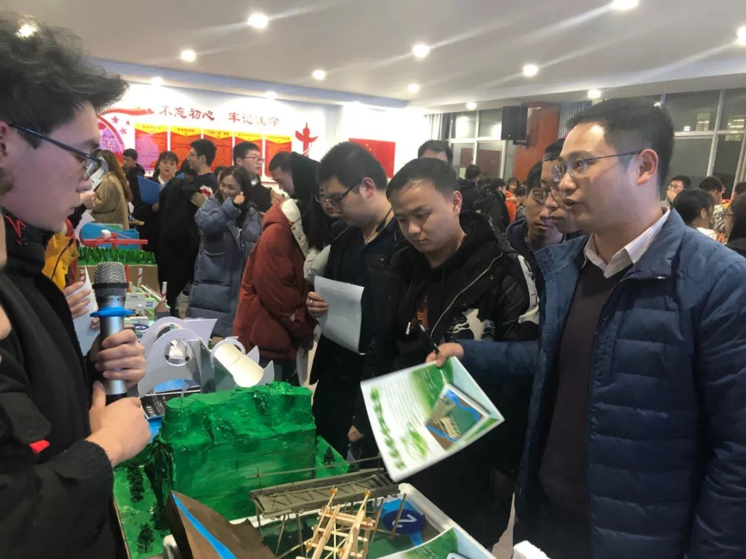 此次比赛以路演的形式展开,分为作品介绍与评委问辩两个环节,共有来自水利学院3个年级的38组队伍150余人参与了本次比赛。在作品介绍环节,选手们围绕设计理念、作品原理、创新点方面进行系统的介绍,评委则从结构设计、美观程度、制作过程、创新创意、答辩表现等方面评定相应的分数并进行有针对性的提问。比赛中,评委充分肯定了作品的质量与选手的创意并围绕作品的可行性、结构的合理性等方面选手进行了沟通与交流。在评委点评中,陈杰肯定了参赛选手的投入与热情以及在现有知识水平上对作品呈现的科学度,并希望同学们在今后的学习中不断提升专业素养,关注实时科技,勤于思考,敢于创新。另外,赛事可在现有的实体模型的基础上,积极拓展BIM模型、CAD模型等电子模型,为同学提供更多展示平台。