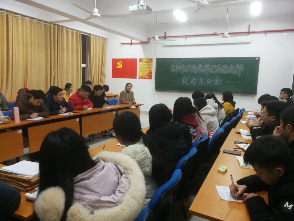 12月下旬,材料学院举办了“不忘初心,牢记使命”党员政治生日会,党总支副书记唐青和学生党支部书记银波出席,支部全体学生党员参加。
