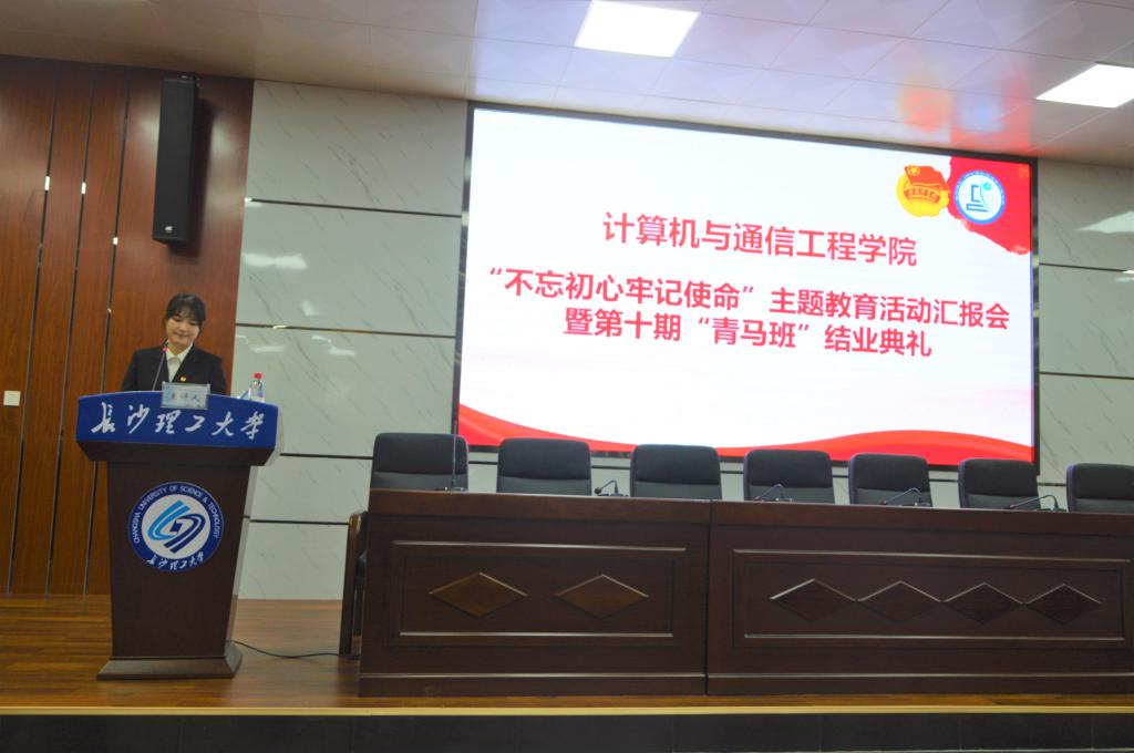 12月29日下午,计通学院于金盆岭校区四教报告厅举办“不忘初心、牢记使命”主题教育汇报会暨第十期“青马班”结业典礼。本次会议由组织部付航主持,计通学院团委书记潘枝花出席本次会议,团委学生会全体成员、计通学院全体团支书参加。