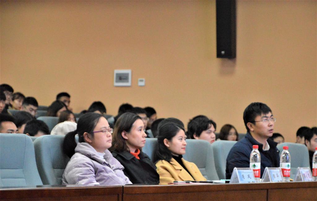 大会第一项,全体起立奏唱团歌。然后是出席老师讲话。肖凤从“什么是团情”和“什么是团心”两个方面告诉了大家如何自我管理,自我提升;并希望大家在未来的学习生活中秉承团情、怀揣团心更好地为计通学院服务。郑国义则以聊天的方式讲述团委的过去与如今,并希望大家在新的一年里能够撸起袖子加油干。大会第二项,党委副书记陈华讲话。陈华从“朝夕必争,不负韶华”和“初心如磐,使命必达”这十六字,对大家寄予厚望,希望大家秉承初心,不负前行。大会第三项,各部门部长述职。各个部门的部长分别用PPT、视频的形式向全体学生会干事及老师们展示了2019年来的付出与成绩,反思了部门的不足,并对2020年的工作做出展望与规划。大会第四项,院团委书记潘枝花讲话。潘枝花首先总结了该次参会人员的表现,表达了对大家的肯定。然后潘枝花便对各部门的述职进行总结,既指出了不足,也肯定了优点。大会第五项,宣读“荣誉部门”名单,并现场给予了前三部门与后三部门“奖励”。