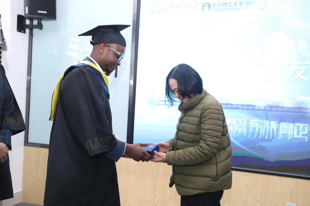 付嫦娥为优秀毕业生开文(加纳籍)和优秀结业生伊娜(苏丹籍)、庄远(也门籍)颁发证书。优秀毕业生开文代表全体毕结业生发言,表达了对学校和老师的感恩之情,并表示将不负厚望,在之后的学习和工作中踏实进步。