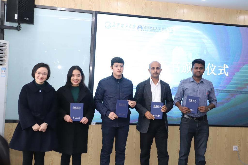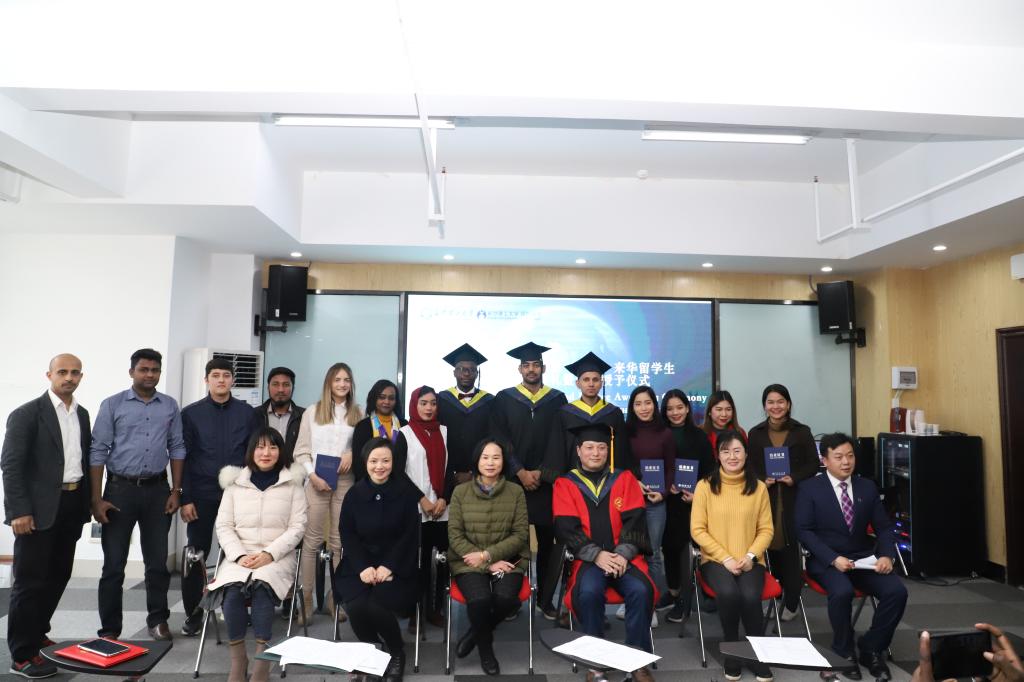 1月7日下午,永利官网2020届(春)来华留学生毕(结)业典礼暨学位授予仪式在国际学院举行。校党委委员兼国际学院党总支书记付嫦娥、国际学院院长陈瑜、土木学院副院长肖勇刚、国际学院副院长甘海鹰、国际学院学习与发展中心负责人汤路,以及国际学生工作办公室全体老师出席了典礼。典礼由国际学生工作办公室负责人王荟惠主持。