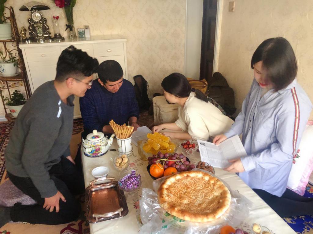 在阿克苏地区,家访团到达时正碰上地震,但三位辅导员马不停蹄乘车往返六个小时只为深入阿拉萨依村三组热孜古丽的家。农村尚未集中供暖,零下十六度的平房冻如冰窖。家访团一行看望了身体状况欠佳的热孜古丽父亲,并与村委会书记阿布力克木就如何形成校地合力,搭建家-校-社区育人网络,加深少数民族学生对国情的认知,为民族团结当好桥梁纽带等问题进行了深入探讨。