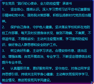 “认真履职尽责,更好服务同学,坚守岗位,对身边同学坚持四项引领,持续关注同学身心健康”……这是来自土木工程学院桥梁工程系全体学生党员的庄严承诺。
