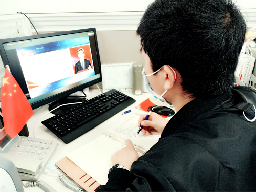3月9日下午,数学与统计学院团委组织师生通过人民网、人民智云客户端、人民视频客户端、咪咕视频客户端、学习大国公众号等收看了由教育部社会科学司、人民网联合举办的“全国大学生同上一堂疫情防控思政大课”。