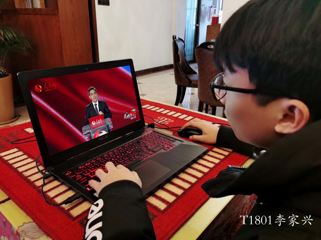直播课上,学生认真聆听,仔细学习,深受鼓舞。这是一次特殊的思政课堂,教授们的精彩讲述,充分激发了继教学子的爱国热情和作为青年一代的责任担当。土木1704班的曹彤博感悟说,“经过这堂思政课的教导,我明白了少年强则国强,少年独立则国独立的道理,明白了爱国的意义。这不仅仅是一堂课,更是对我们人生的引领”。