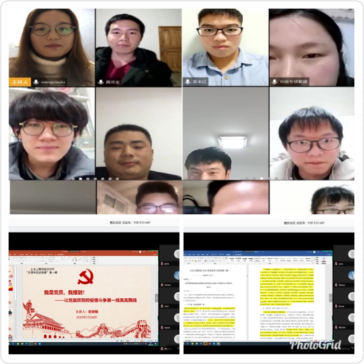 疫情爆发以来,党中央高度重视,习近平总书记亲自部署,全国上下万众一心、众志成城,齐心抗“疫”。疫情防控时期,土木学院研究生各党支部积极响应 “停课不停学”的号召,保证学习、科研顺利推进,加强理论学习,贯彻落实习近平总书记对新冠肺炎疫情防控工作的重要指示精神,充分发挥党组织的战斗堡垒作用和党员的先锋模范作用,开展了一场场别开生面的线上主题党日活动,展现党员应有的担当责任模范作用
