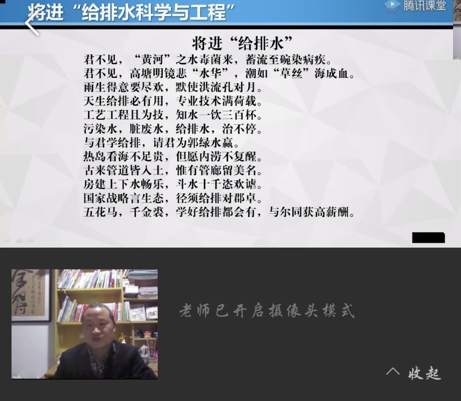 彭向训老师为水利类专业的学生开展了以《长沙城市发展规划中的水资源水环境问题》为主题的在线讲座。他以讲故事的形式,从四个时间节点简要叙述了长沙城市发展规划中所面临的水资源、水环境和水安全的问题。他用自己的经历和体会告诉同学们学习与研究要有前瞻性,并且要勤奋,能吃苦。