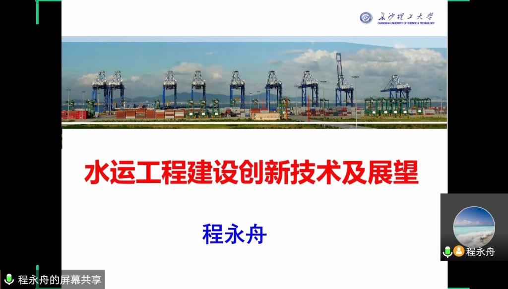 程永舟教授为水利类专业的学生开展了以《水运工程建设创新技术及展望》为主题的在线讲座。他从水运工程建设成就、水运工程建设创新技术、新时代水运工程建设发展和交通强国战略下水运建设的新任务等四个方面深入浅出地向学生作了阐述,指出新时代下水运工程建设方面还大有可为,同学们要学以致用,用以促学,为建设国家贡献自己的一份力量。