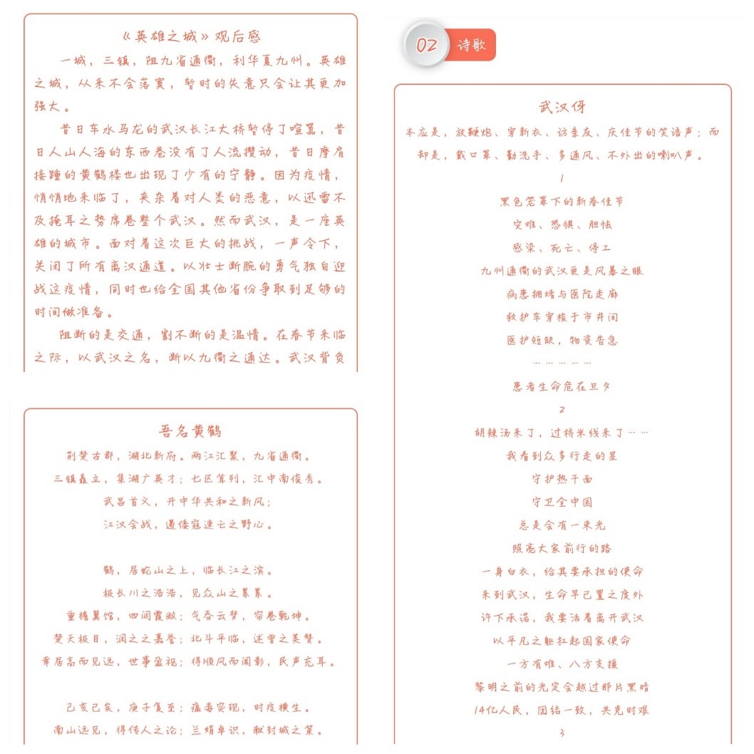 本次活动由院研会提供了部分战疫纪录片链接,如《武汉24小时》、《中国战疫录》、《英雄之城》等,组织研究生们在线观看。观看后,许多研究生纷纷投来自己的观后感,表达了对那些为了武汉、为了国家不顾个人安危的医务工作者以及其他奋战一线的工作人员的致敬。最后,学院评选出了6篇观后感、2篇诗歌、1份其他类作品等一系列优秀作品在学院微信公众平台进行展示。激励研究生心存感恩,担当起时代赋予的历史责任,当祖国和人民需要我们的时候,能够冲锋在前,做“专业报国”的行动者。