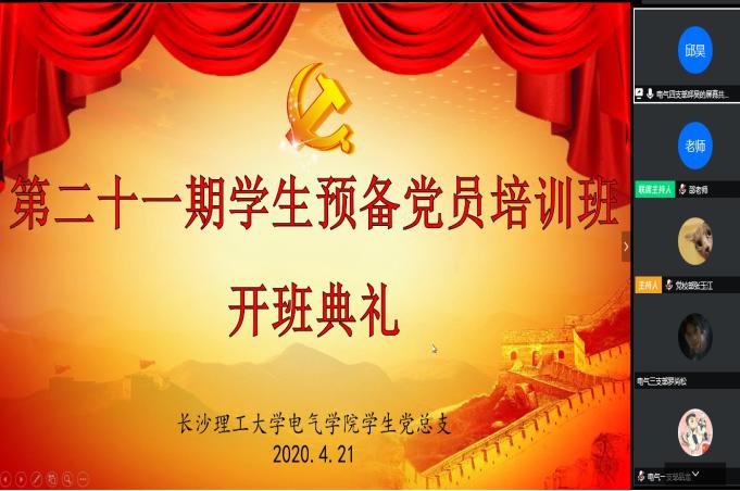4月21日晚,电气学院在腾讯会议平台上举办了第21期预备党员培训班开班典礼暨第一次党课培训。马克思主义学院党委书记易显飞为学院78名预备党员讲授专题党课。